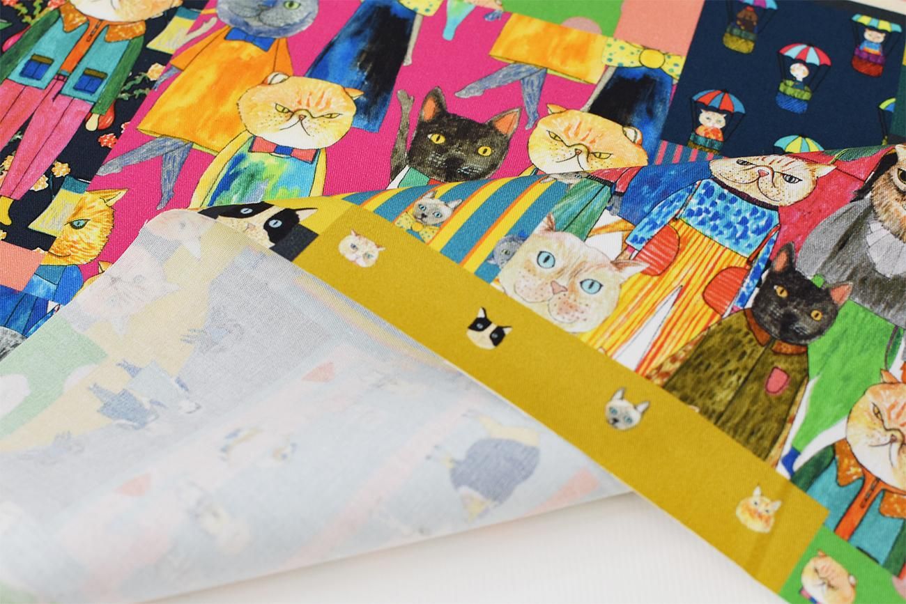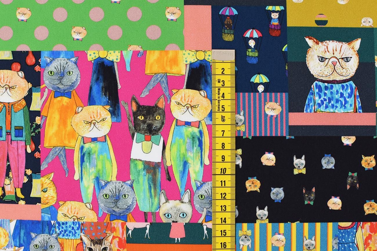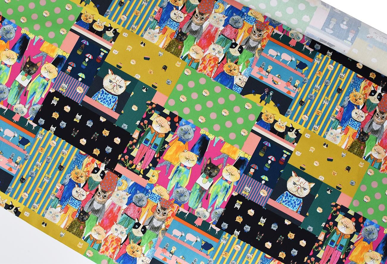 人気の猫柄がパッチワーク風に組み合わさったデザイン。