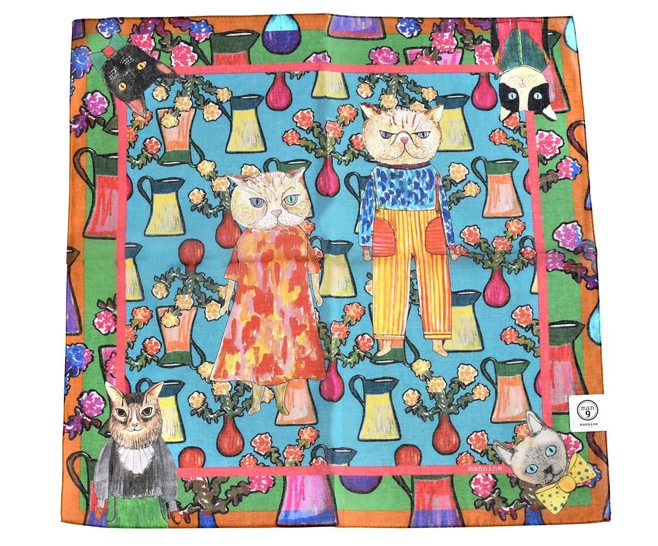 中央と四隅にはマンナインの猫キャラクターたちがプリントされています。